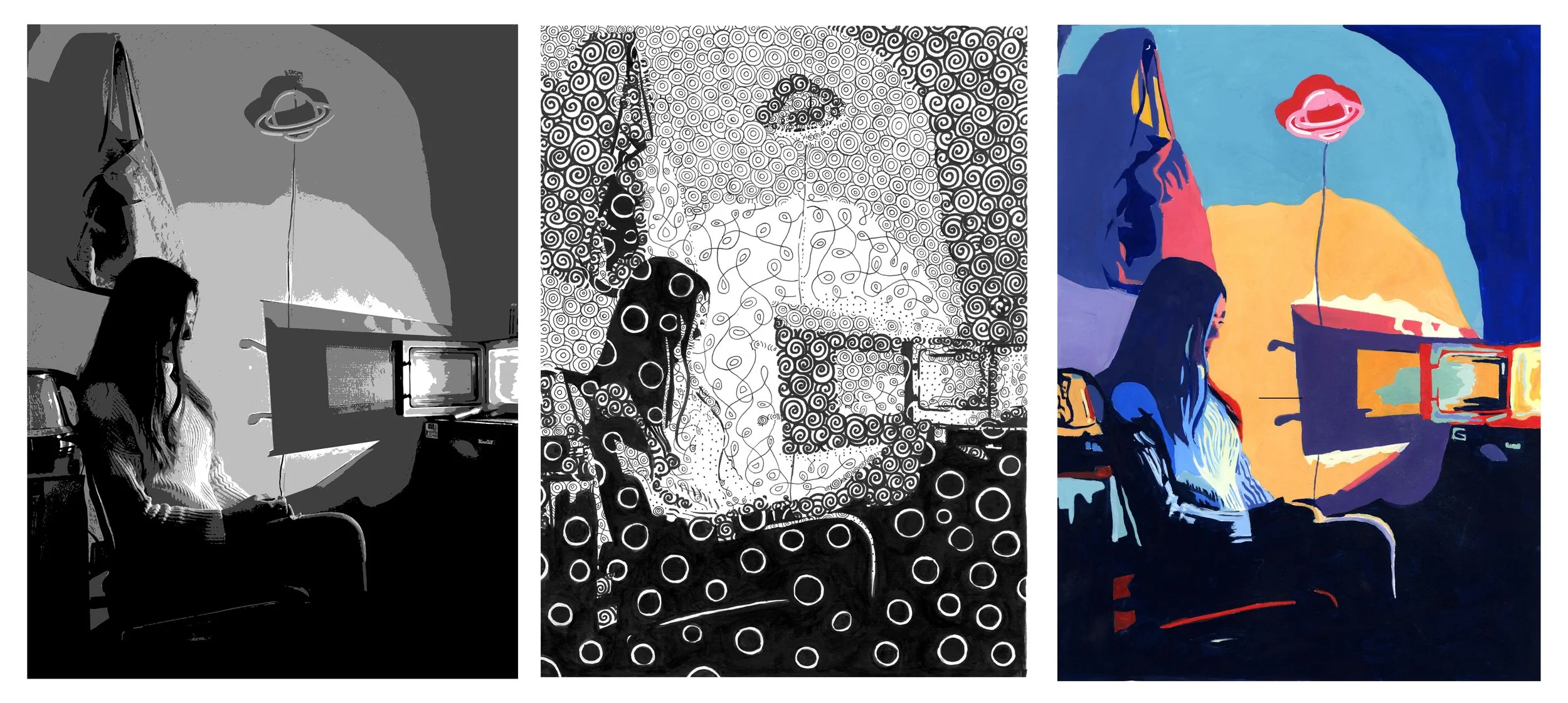 Swipe through some doodles of fantasy landscapes. Each frame’s colors were derived from found objects!